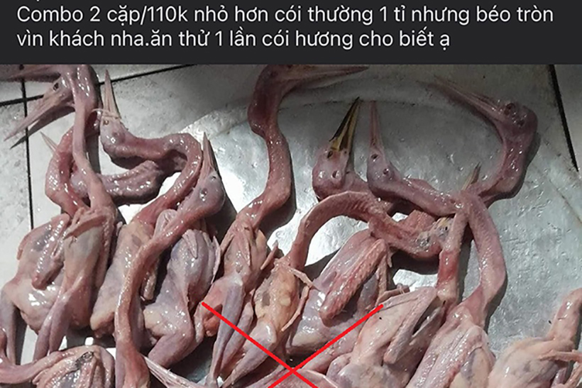 Tương tự trường hợp của chị T., chị Trần Thị P. (SN 1988, xã Kỳ Hoa, TX Kỳ Anh) cũng thường xuyên sử dụng tài khoản facebook có tên Trần P. đăng bán các loại chim trời như cói, diệc, vạc... Chủ tài khoản này còn “hồn nhiên” livestream (phát sóng trực tiếp) quảng cáo cảnh sơ chế chim hoang dã trên mạng xã hội.