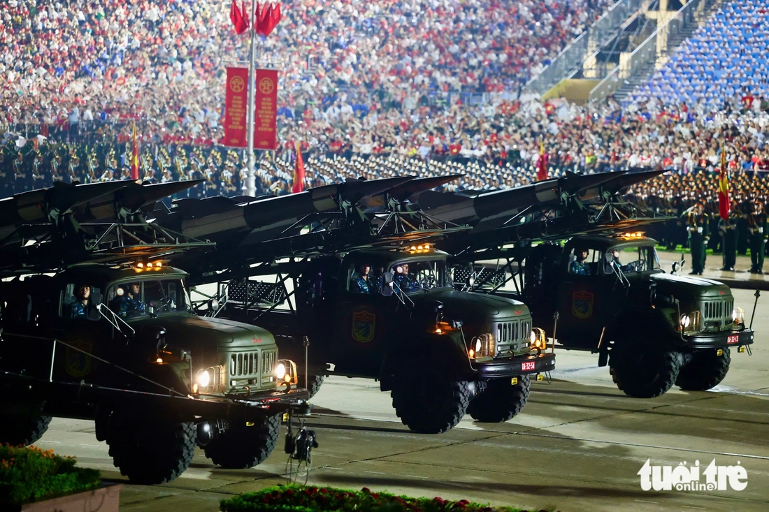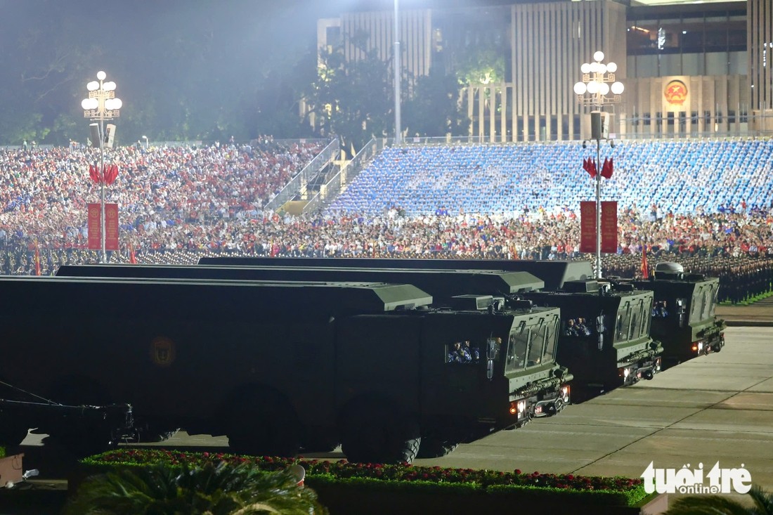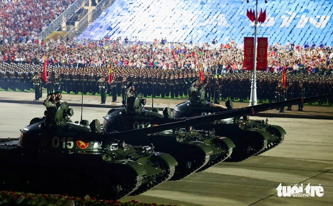 Xe tăng cùng hệ thống phòng thủ tên lửa bờ biển, cùng nhiều loại khí tài khác di chuyển qua các tuyến phố trước khi tiến vào quảng trường Ba Đình. Đây là những khí tài hiện đại của Quân đội nhân dân Việt Nam.