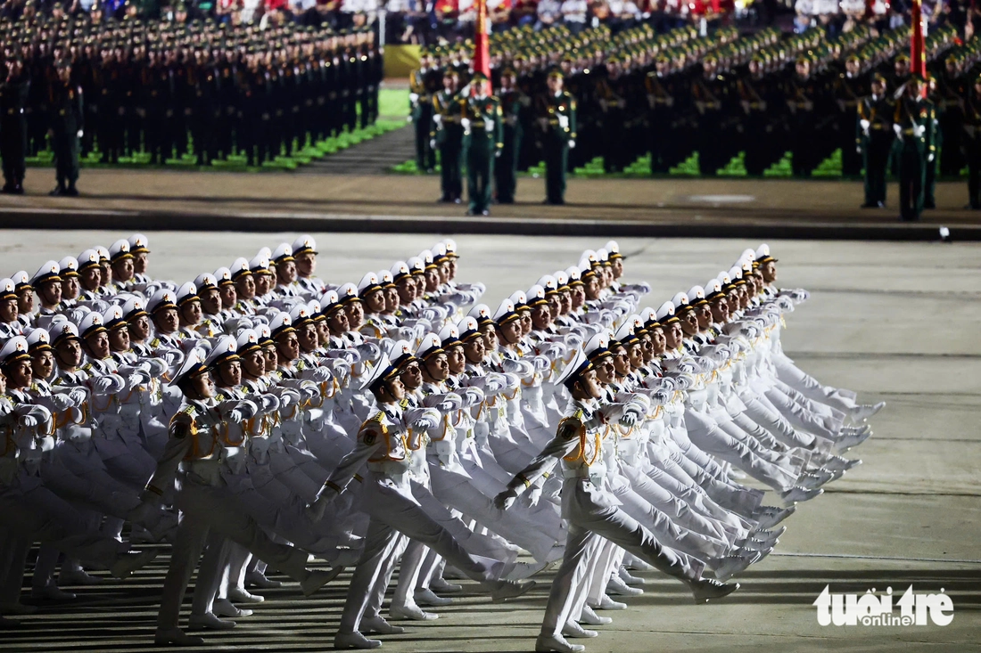 Bên cạnh dàn khí tài, các khối đội hình đều tăm tắp di chuyển vào quảng trường Ba Đình trong buổi sơ duyệt đã tạo những ấn tượng đặc biệt cho người xem.