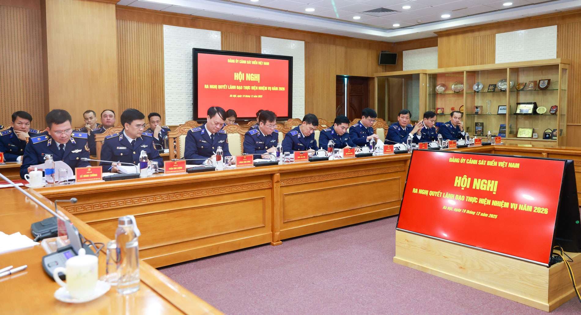 Sáng 19/12, Đảng ủy Cảnh sát biển Việt Nam tổ chức Hội nghị ra Nghị quyết lãnh đạo thực hiện nhiệm vụ năm 2026, xác định rõ phương hướng, mục tiêu và các giải pháp trọng tâm nhằm tiếp tục bảo vệ vững chắc chủ quyền, quyền chủ quyền, quyền tài phán quốc gia, giữ vững an ninh, trật tự, an toàn trên các vùng biển của Tổ quốc.