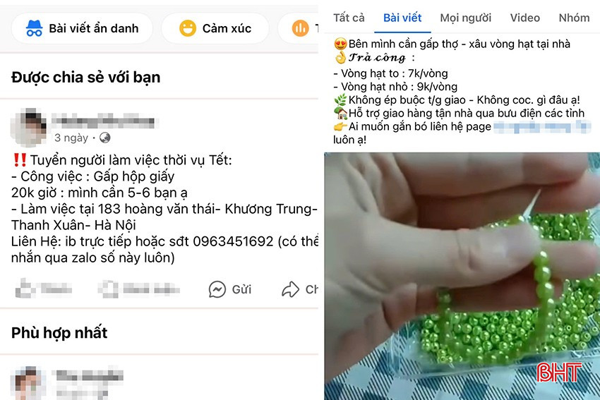 Những ngày cuối năm, khắp các trang mạng xã hội “phủ sóng” các bài đăng tuyển người lao động làm việc thời vụ nhắm vào độ tuổi học sinh, sinh viên, mẹ bỉm sữa, người có thu nhập thấp... với lời hứa hẹn “việc nhẹ, lương cao”, “trả lương theo ngày”... Các bài đăng thu hút lượng tương tác lớn, nhiều người dân đã đăng ký ứng tuyển để có thêm thu nhập. Thế nhưng, thực tế trao đổi nội dung công việc lại không như những lời mời chào.
