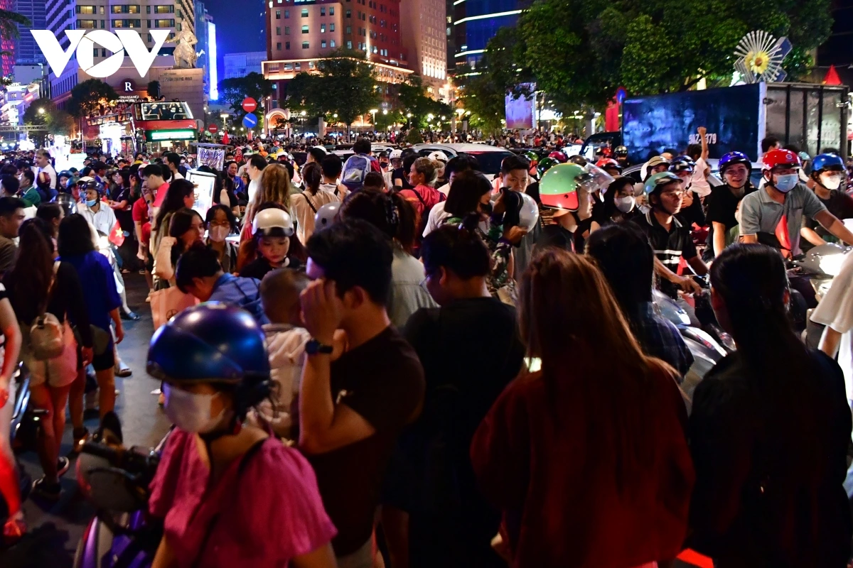 Sức hút của buổi tổng duyệt khiến tuyến đường dọc theo sông Sài Gòn và khu vực trung tâm TP.HCM kẹt cứng.