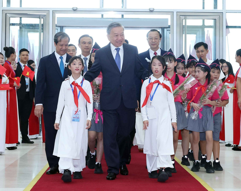 Sáng 5/9/2025, tại Hà Nội, Tổng Bí thư Tô Lâm, các đồng chí lãnh đạo, nguyên lãnh đạo Đảng, Nhà nước dự Lễ kỷ niệm 80 năm truyền thống ngành Giáo dục; đón nhận Huân