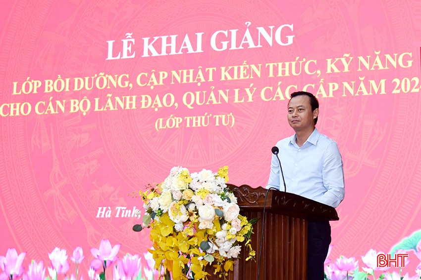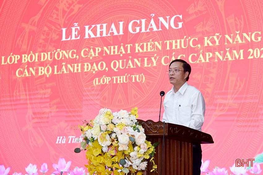 Phát biểu khai giảng lớp học, Trưởng ban Tuyên giáo Tỉnh ủy Hà Văn Hùng nhấn mạnh ý nghĩa quan trọng của việc tổ chức các lớp bồi dưỡng, cập nhật kiến thức, kỹ năng cho cán bộ lãnh đạo, quản lý các cấp.