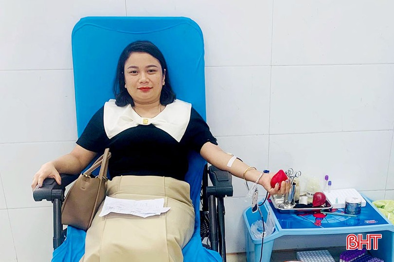 Chị Phan Thị Diễn (SN 1990) - Chủ tịch Hội LHPN phường Bắc Hồng (TX Hồng Lĩnh) hiến máu.