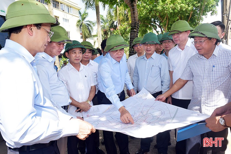 Phó Bí thư Thường trực Tỉnh ủy Trần Thế Dũng, Chủ tịch UBND tỉnh Võ Trọng Hải và các đồng chí lãnh đạo tỉnh kiểm tra một số dự án trọng điểm trên địa bàn thành phố vào ngày 4/6.