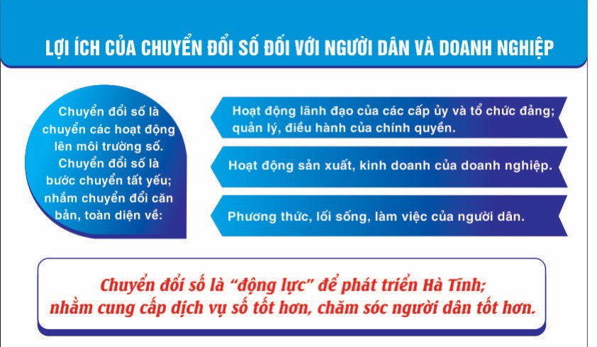 Thời gian tới, Ban Chỉ đạo Chuyển đổi số tỉnh tập trung vào các nhiệm vụ trọng tâm như: tiếp tục thực hiện kế hoạch về phát triển chính quyền số và bảo đảm an toàn thông tin mạng; triển khai Kiến trúc chính quyền điện tử tỉnh Hà Tĩnh phiên bản 2.0; triển khai ứng dụng hiệu quả nền tảng tích hợp, chia sẻ dùng chung cấp tỉnh, kết nối liên thông với nền tảng tích hợp và chia sẻ quốc gia; tuyên truyền về hoạt động chuyển đổi số của doanh nghiệp…
