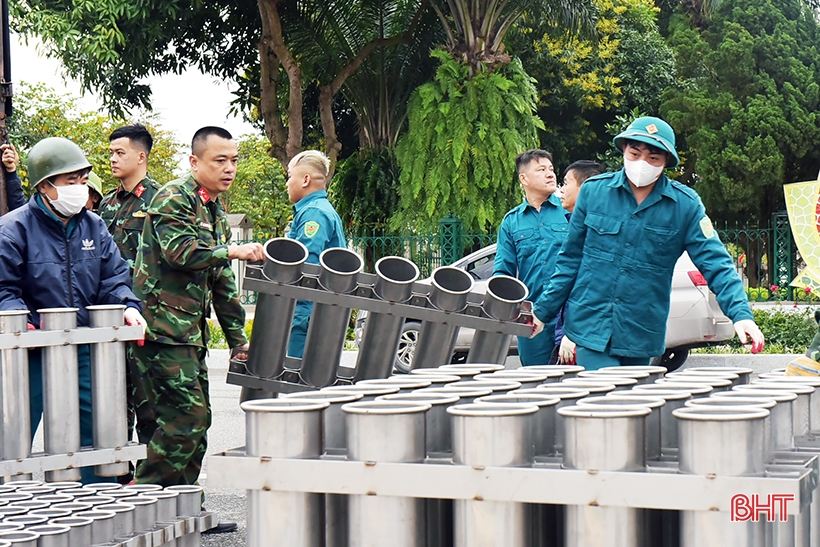 Trung tá Nguyễn Xuân Tùng - Phó Tham mưu trưởng, Ban Chỉ huy Quân sự thành phố Hà Tĩnh cho biết: "Trận địa gồm 3.500 quả. Trong đó pháo tầm cao có 500 quả, pháo tầm thấp có 120 thùng với 3.000 quả".
