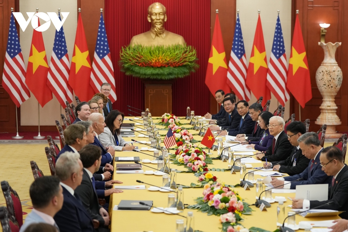 Tổng Bí thư Nguyễn Phú Trọng và đoàn đại biểu cấp cao Việt Nam hội đàm với Tổng thống Joe Biden và đoàn đại biểu cấp cao Hoa Kỳ.