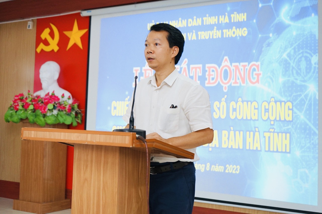 Ông Dương Văn Tuấn - Phó Giám đốc Sở Thông tin và Truyền thông Hà Tĩnh phát biểu tại buổi Lễ