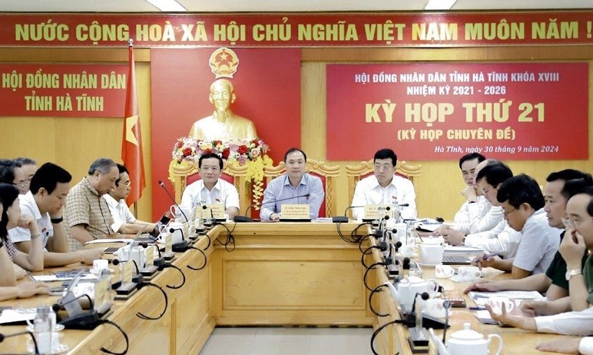 Kỳ họp thứ 21, HĐND tỉnh Hà Tĩnh đã quyết nghị tán thành chủ trương sáp nhập, thành lập đơn vị hành chính cấp huyện, xã giai đoạn 2023-2025. Ảnh: BHT.Theo đó, TP Hà