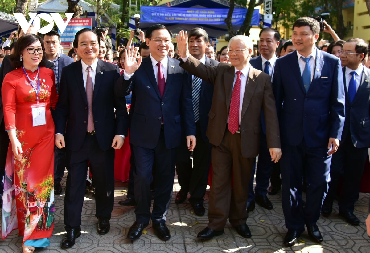 Tổng Bí thư, Chủ tịch nước Nguyễn Phú Trọng về thăm trường cũ THPT Nguyễn Gia Thiều.
