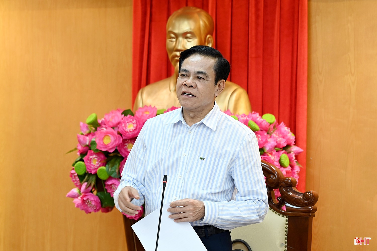 Phó Chủ tịch Thường trực UBND tỉnh Nguyễn Hồng Lĩnh báo cáo tại cuộc họp.(ảnh: BHT)