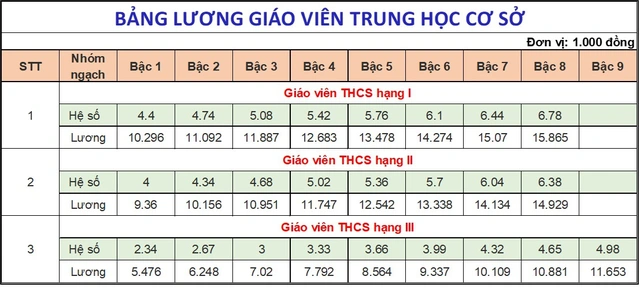 Bảng lương dự kiến của giáo viên từ 1/7/2024