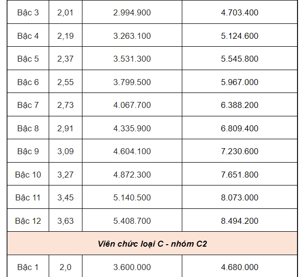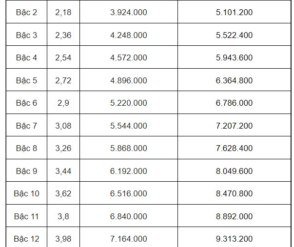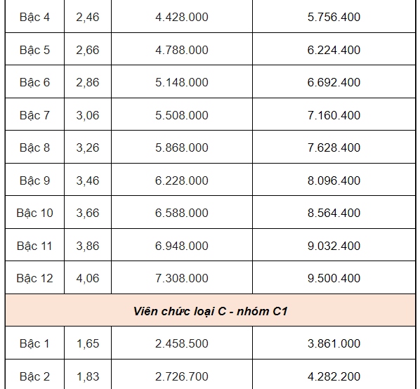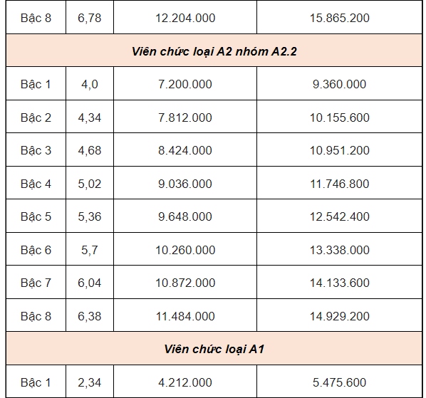 Bảng lương dự kiến của viên chức từ 1/7/2024