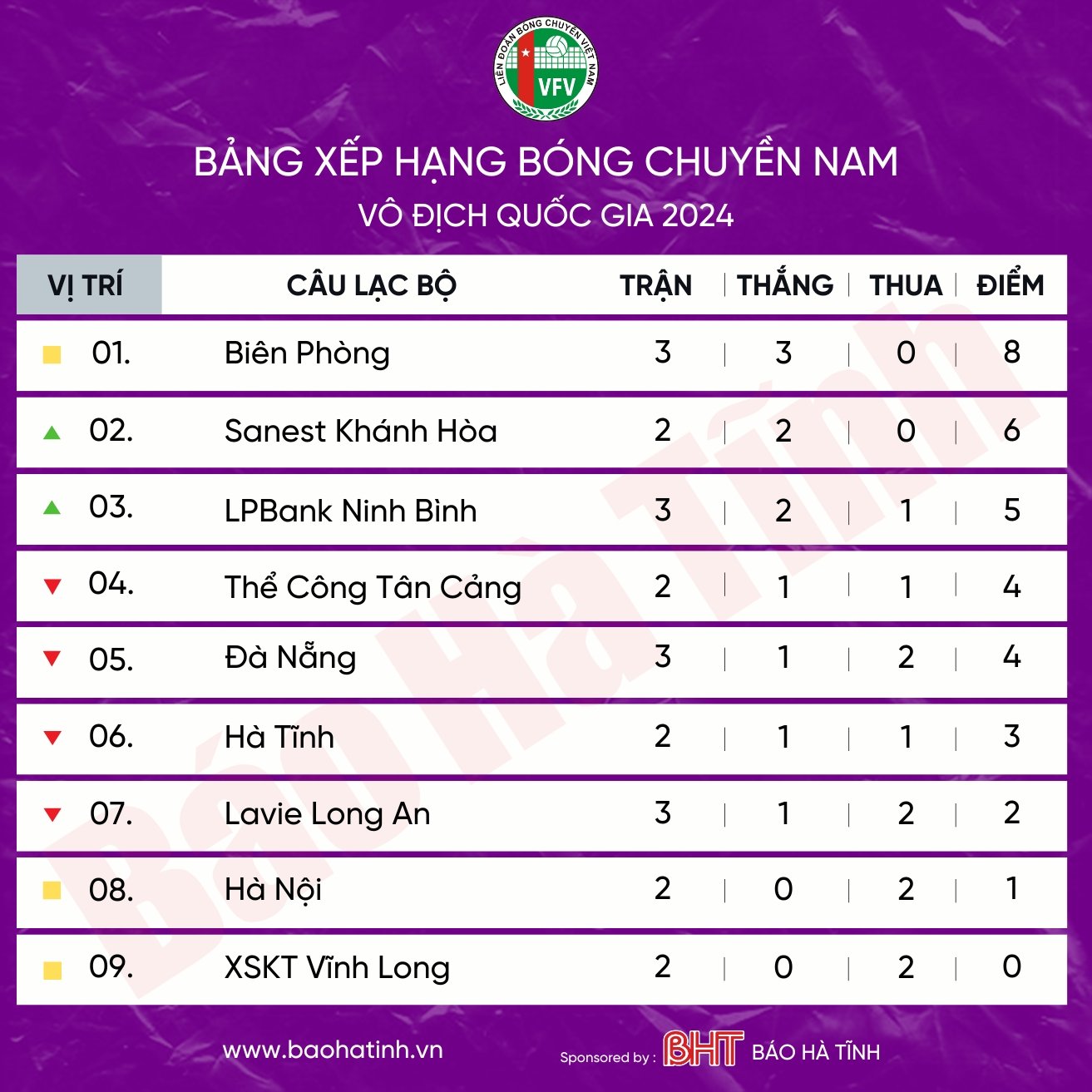 Sau 2 trận, bóng chuyền nam Hà Tĩnh giành được 3 điểm.