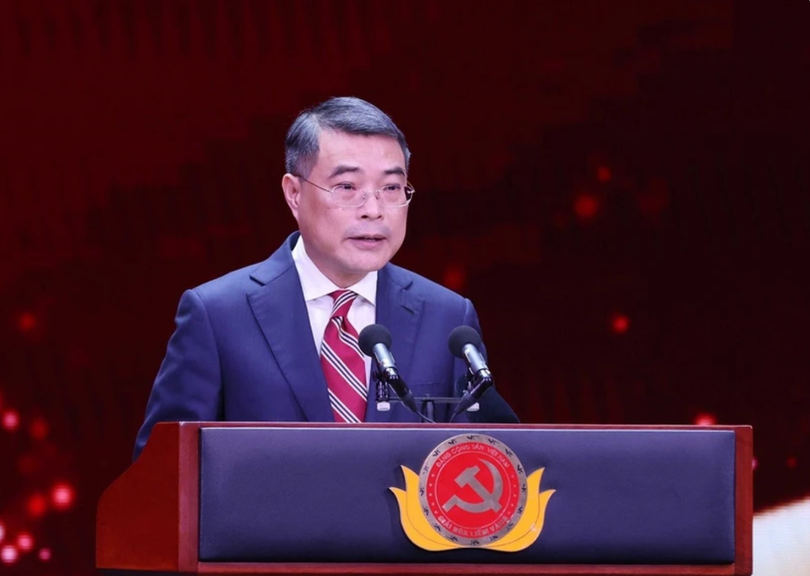Trưởng ban Tổ chức Trung ương Lê Minh Hưng - Trưởng BCĐ Giải báo chí về xây dựng Đảng phát động Giải Búa liềm vàng năm 2025. Ảnh: TTXVN.