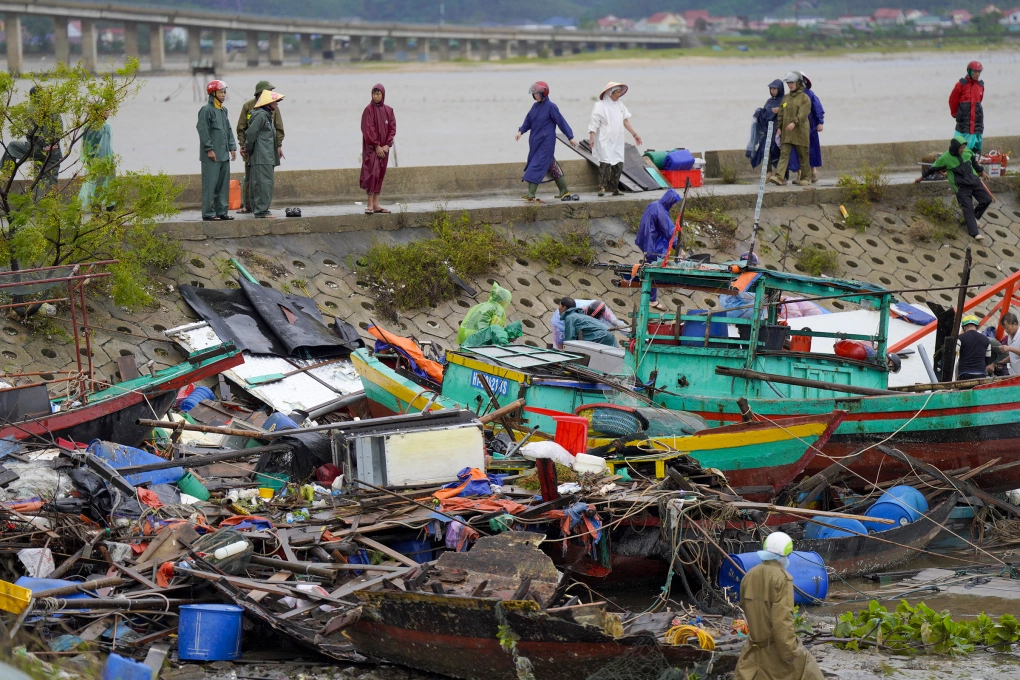 Tàu thuyền của người dân Cẩm Nhượng, Hà Tĩnh hư hỏng hàng loạt sau bão. Ảnh: Nguyễn Đông