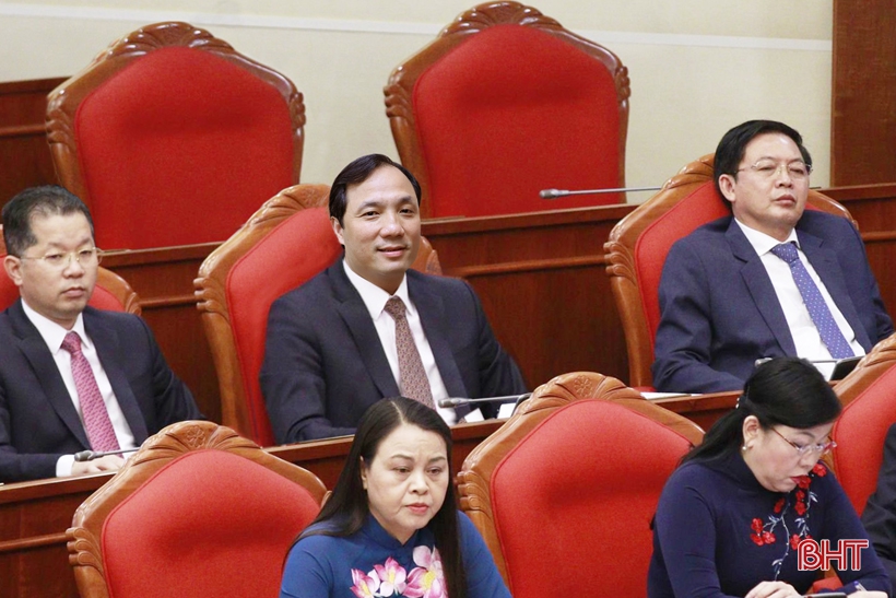 Bí thư Tỉnh ủy Hà Tĩnh Hoàng Trung Dũng cùng các đại biểu tham dự hội nghị.