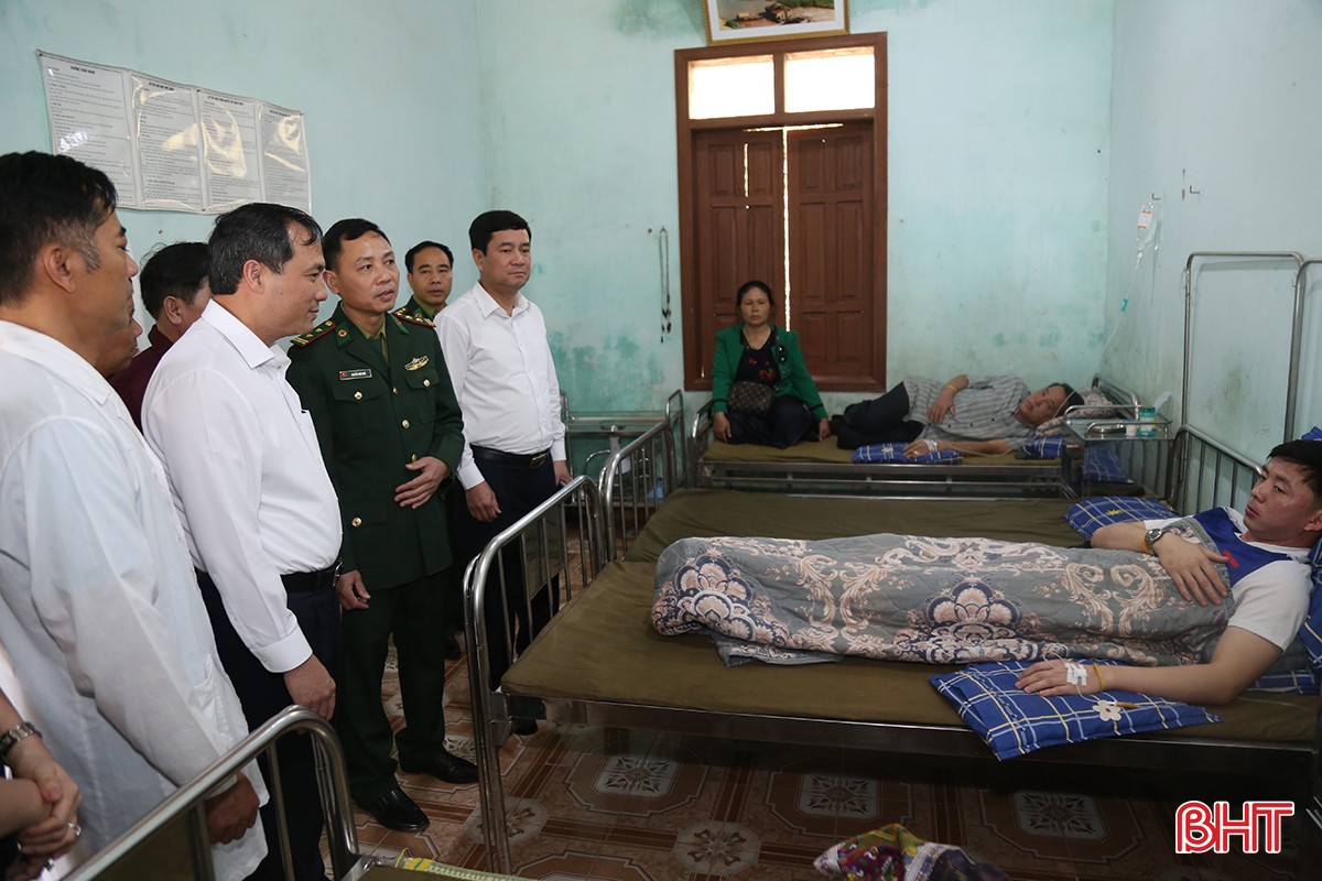 Cùng với việc trao đổi tình hình đời sống sinh hoạt, công việc chuyên môn của các quân y ở Trạm xá Quân dân y kết hợp bản Thoọng Pẹ, Bí thư Tỉnh ủy Hoàng Trung Dũng đã ân cần thăm hỏi tình hình sức khỏe của những người dân bản Thoọng Pẹ đang điều trị tại đây.