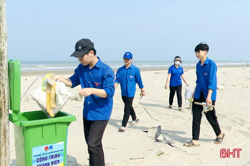 Huyện đoàn Nghi Xuân đã huy động hàng trăm đoàn viên thanh niên ra quân vệ sinh, thu gom rác thải làm sạch môi trường biển.