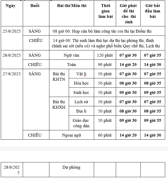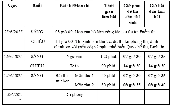 Lịch thi đối với các thí sinh dự thi với đề thi của Chương trình GDPT hiện hành như sau: