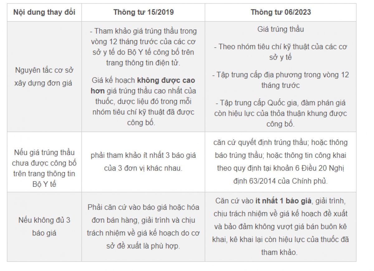 Đối với vấn đề 3 báo giá (hoặc hóa đơn bán hàng), Thông tư 06/2023 vẫn quy định tham khảo 3 báo giá khác nhau tại thời điểm lập kế hoạch lựa chọn nhà thầu. Tuy nhiên, trường hợp thuốc không đủ 3 báo giá, người đứng đầu đơn vị căn cứ vào ít nhất 1 báo giá, giải trình, chịu trách nhiệm về giá kế hoạch đề xuất và bảo đảm không vượt giá bán buôn kê khai, kê khai lại còn hiệu lực của thuốc đã tham khảo./.