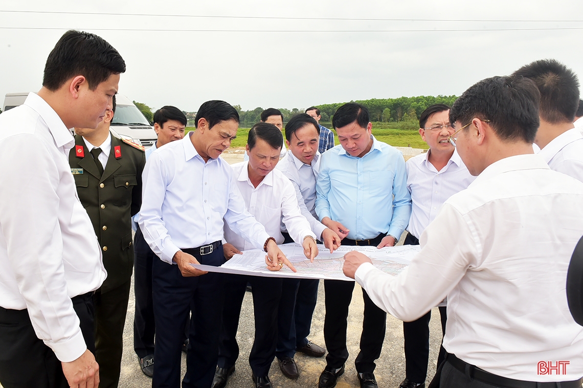 Đoàn kiểm tra Dự án đường giao thông từ thị trấn Đức Thọ đến Khu lưu niệm Tổng Bí thư Trần Phú; khu vực quy hoạch trung tâm hành chính thị trấn Đức Thọ.