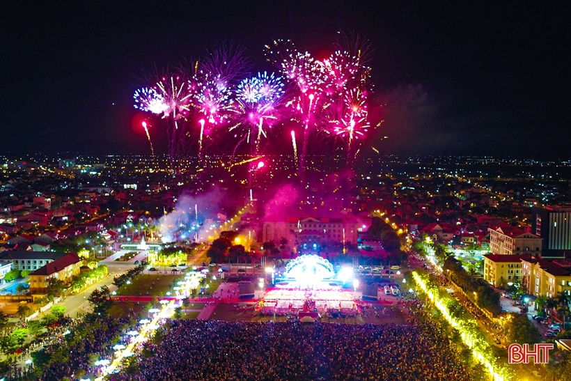 Màn bắn pháo hoa sau Lễ kỷ niệm 65 năm Ngày Bác Hồ về thăm Hà Tĩnh, 15 năm thành lập thành phố Hà Tĩnh (ngày 11/6/2022)