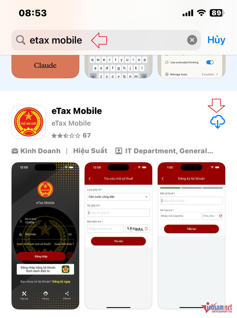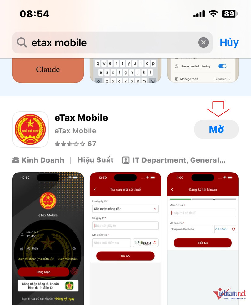 Bước 1: Cài đặt ứng dụng eTax Mobile.