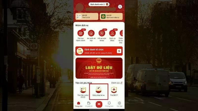 Bước 1: Tại giao diện chính của ứng dụng VNeID, bạn tìm và chọn vào phần có nội dung liên quan đến “Giấy phép lái xe”. Đây là nơi tập hợp những dữ liệu cần thiết để bạn kiểm tra chi tiết điểm của GPLX.