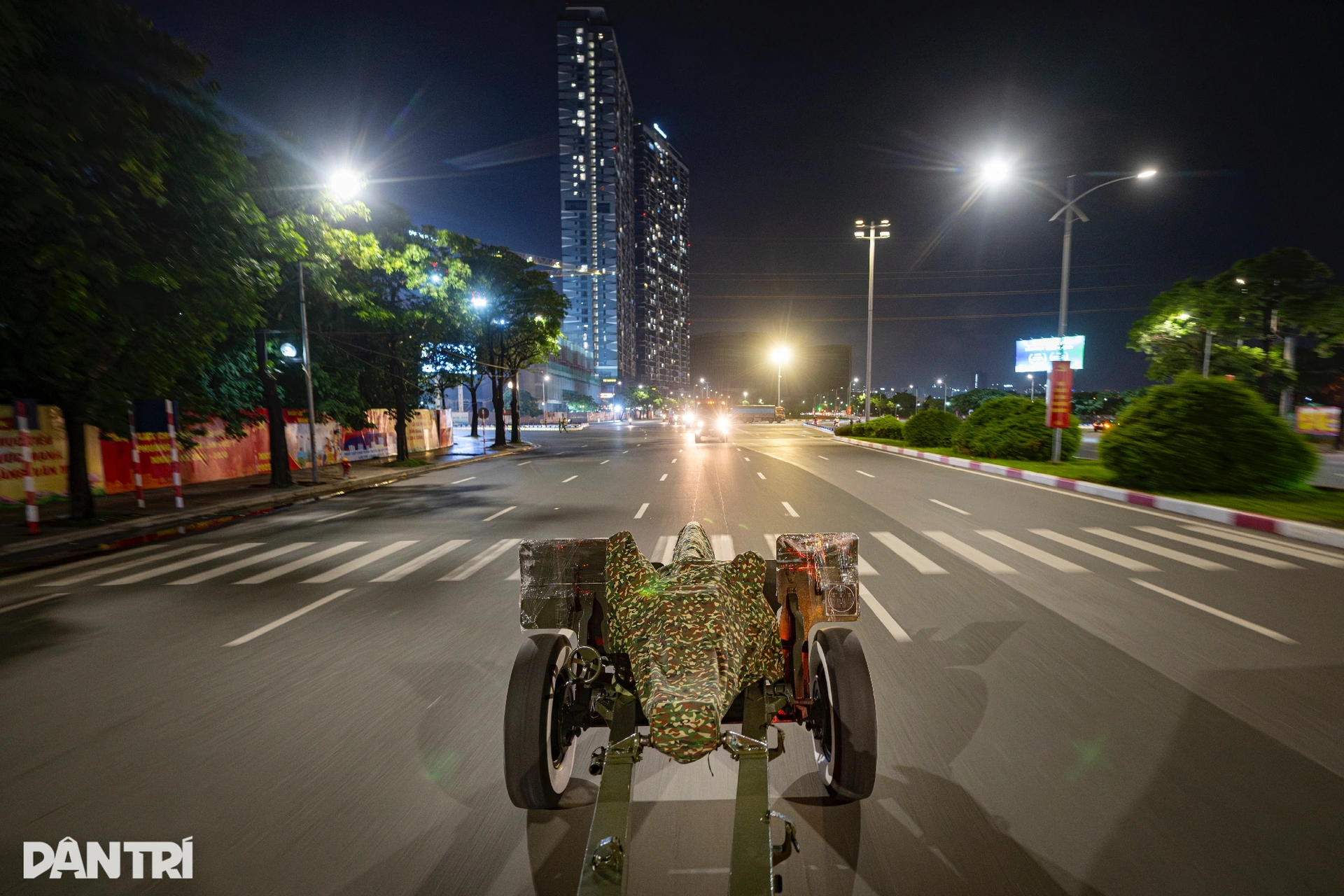 Đúng 21h05, từng chiếc xe kéo pháo lễ lần lượt lăn bánh rời đơn vị, hướng về sân vận động Mỹ Đình.