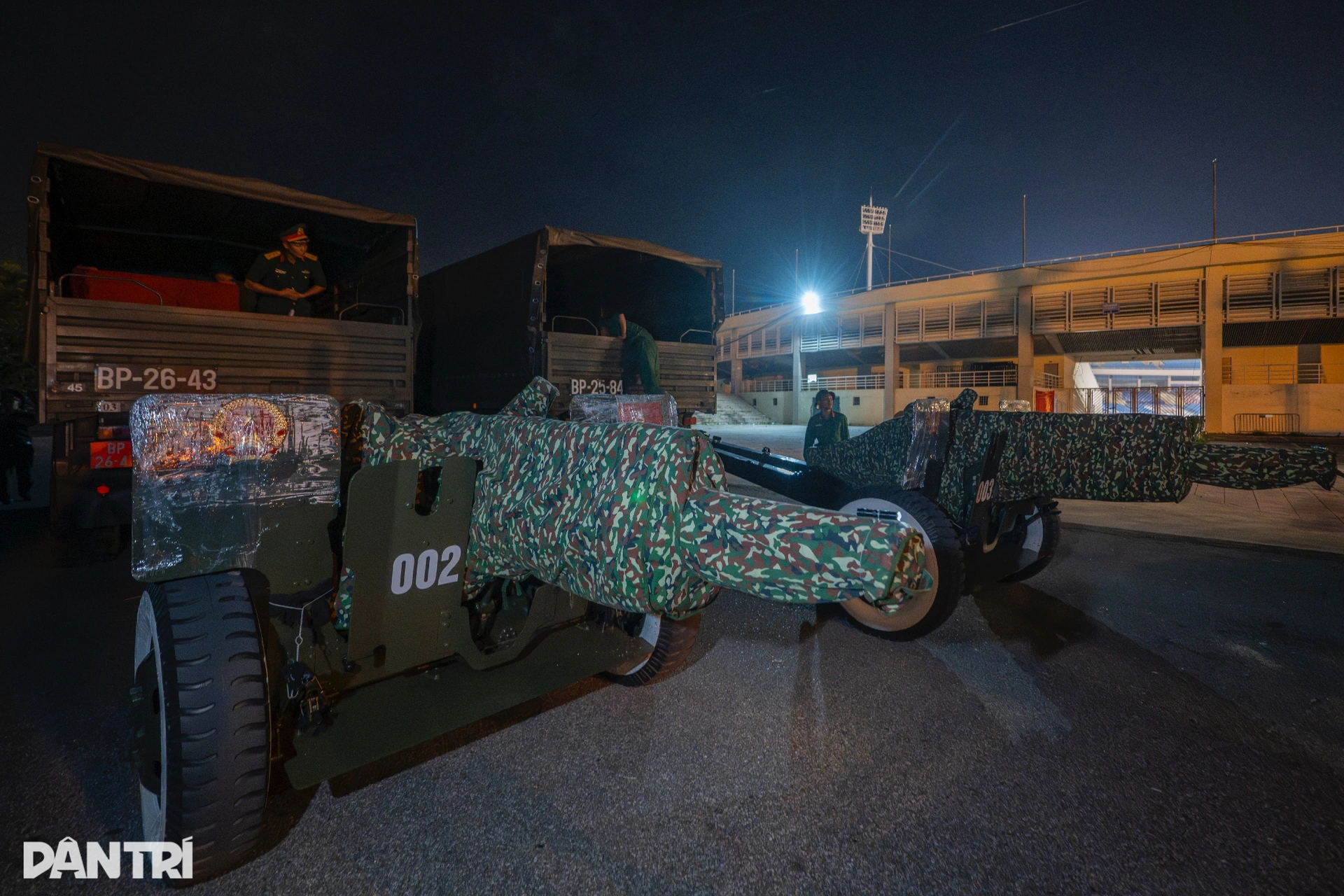 Tối 19/5, tại Lữ đoàn Pháo binh 45 (Binh chủng Pháo binh), 15 xe tải kéo 15 khẩu pháo 105mm đã được tập kết, sẵn sàng di chuyển về sân vận động Mỹ Đình để phục vụ Đại lễ kỷ niệm 80 năm Cách mạng tháng Tám thành công và 80 năm Quốc khánh 2/9 (A80).