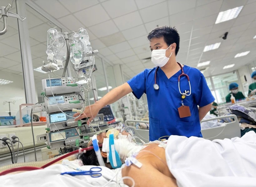 Một bệnh nhân mắc cúm trong tình trạng nặng đang điều trị tại Bệnh viện Bệnh Nhiệt đới Trung ương. (Ảnh: PV/Vietnam+)