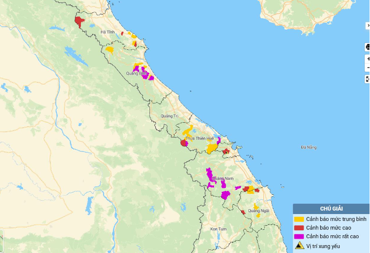 Cảnh báo mưa trong thời gian tiếp theo: trong 3-6 giờ tới, khu vực các tỉnh Hà Tĩnh, Quảng Bình và từ Thừa Thiên Huế đến Quảng Ngãi tiếp tục có mưa, với lượng mưa tích lũy phổ biến từ 10-30mm, có nơi trên 50mm. Trong 6 giờ tới, nguy cơ xảy ra lũ quét trên các sông, suối nhỏ, sạt lở đất trên sườn dốc tại nhiều huyện.