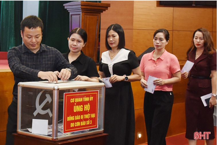 Cán bộ, công chức, viên chức, người lao động các cơ quan, đơn vị trên địa bàn Hà Tĩnh chung tay đóng góp ủng hộ đồng bào phía Bắc khắc phục hậu quả thiên tai.
