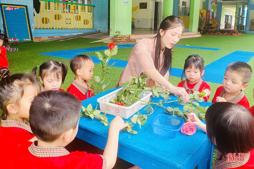 Cô trò Trường Mầm non Thạch Long (Thạch Hà).
