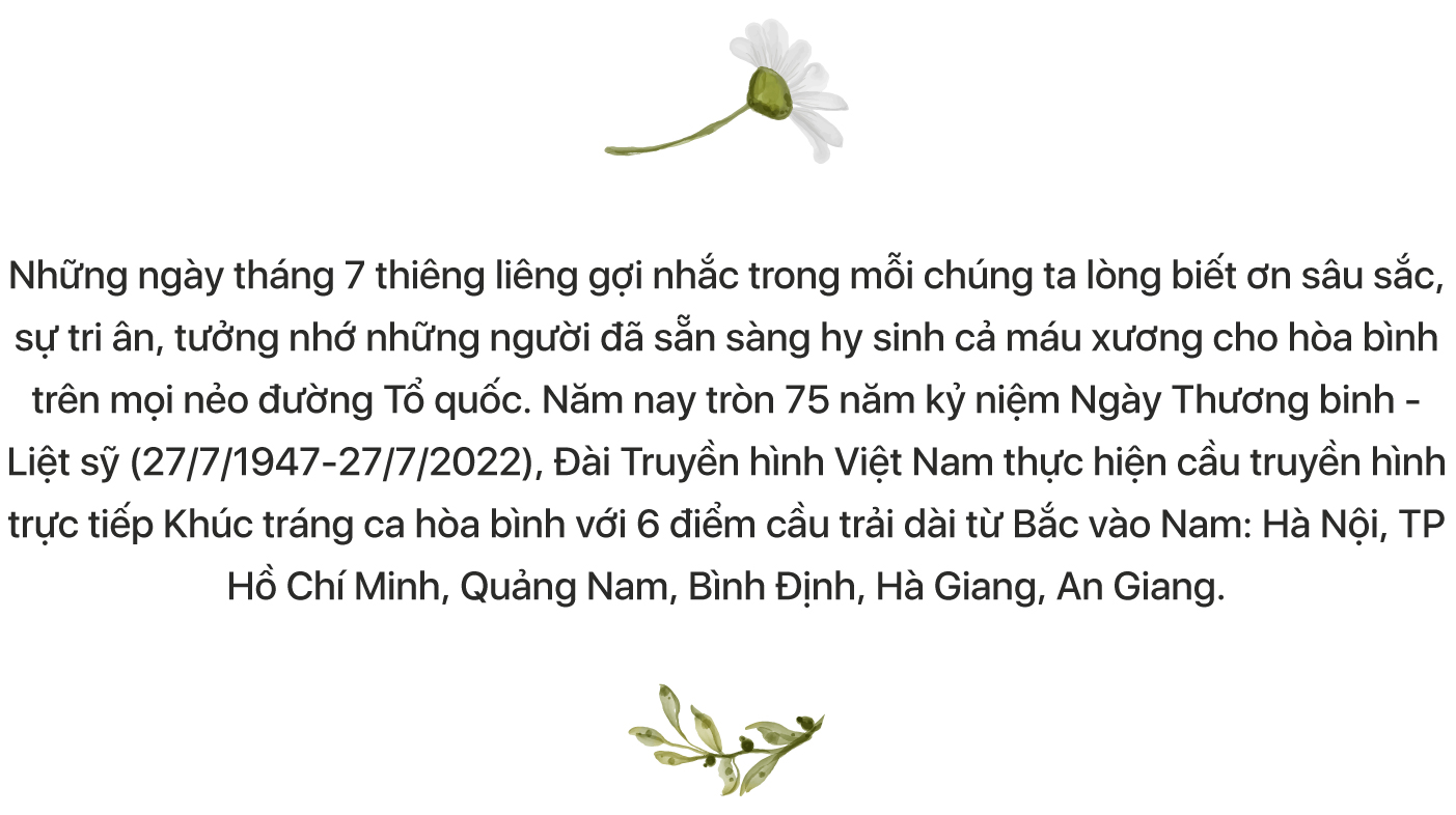 Tại điểm cầu An Giang, năm nay sẽ có 22 bộ hài cốt liệt sỹ hy sinh ở Campuchia được đưa trở về đất Mẹ trong đúng ngày tháng 7 này và sẽ được làm lễ an táng tại Việt Nam vào ngày 25/7 - rất sát thời điểm chương trình cầu truyền hình Khúc tráng ca hòa bình diễn ra. Những câu chuyện tại điểm cầu TP Hồ Chí Minh hay An Giang đều là những câu chuyện rất mới.