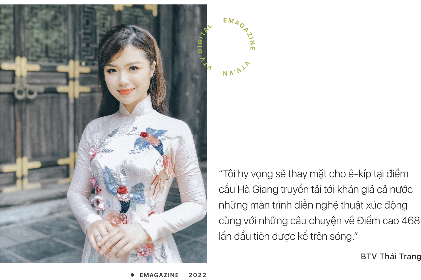 Thái Trang là gương mặt trẻ từng tham gia dẫn cầu truyền hình quan trọng nên lần này, nữ BTV đón nhận nhiệm vụ với tâm thế tự hào và sẵn sàng thực hiện. Đây sẽ là lần đầu tiên BTV Thái Trang đặt chân đến mảnh đất Hà Giang, nơi cực Bắc Tổ quốc vô cùng thiêng liêng. Vì thế, những ngày tháng 7 này còn đặc biệt hơn với cô, bởi nơi núi đá Hà Giang ấy có những cha anh ta đã nằm xuống - hóa đá - để bảo vệ cho từng tấc đất, tấc rừng, cho bình yên của người dân quê mình. "Còn rất nhiều mong đợi, trăn trở, làm sao để có thể tìm thấy và đón được hết các anh về với đất mẹ, cũng khiến tôi đau đáu rất nhiều trong chuyến đi này" – nữ BTV bộc bạch.
