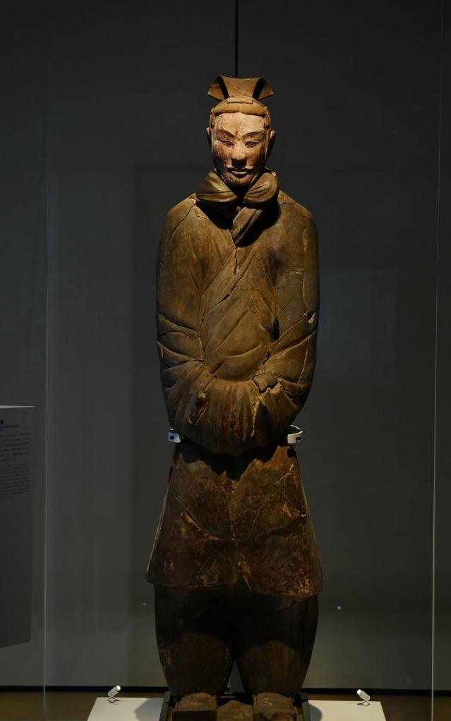 Tượng chiến binh đất nung này đang được trưng bày trong triển lãm kỷ niệm 50 năm ngày phát hiện và khai quật đội quân đất nung của Tần Thủy Hoàng.