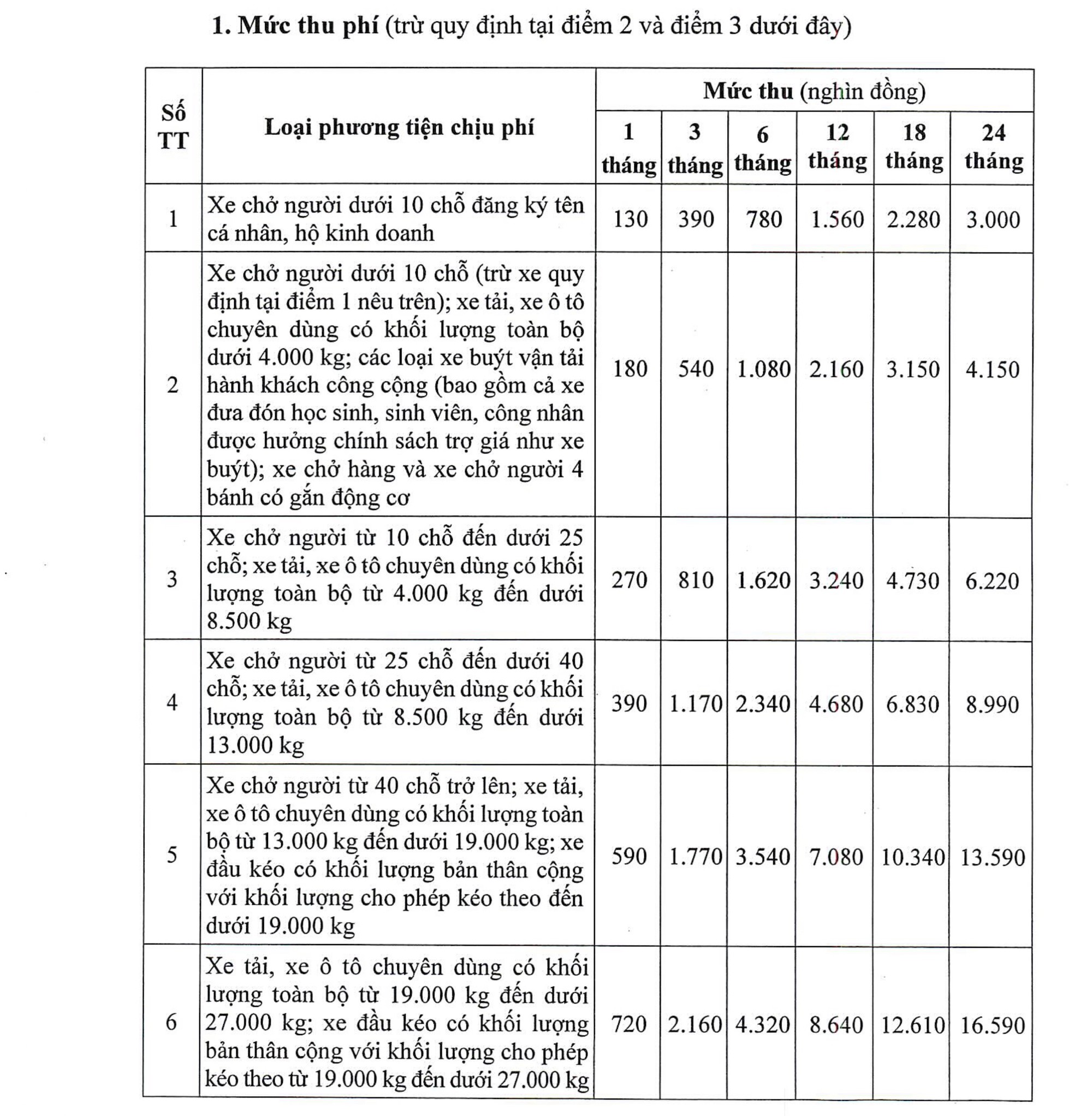 Chi tiết mức thu phí đường bộ mới áp dụng từ 1/2/2024