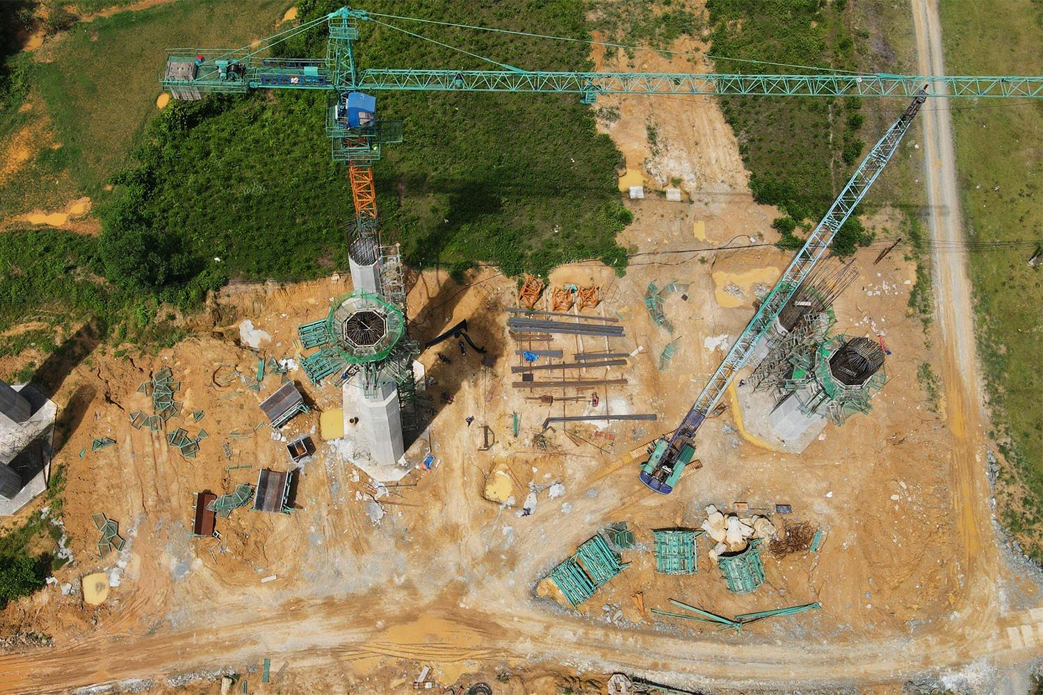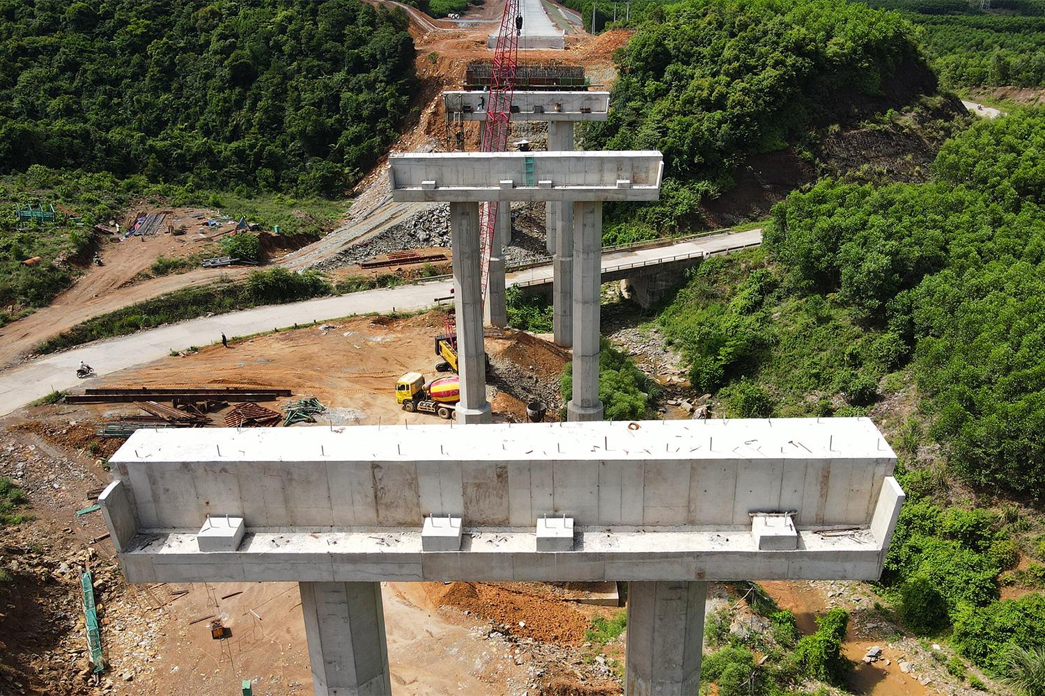Quá trình thi công gặp khá nhiều khó khăn nhưng với sự nỗ lực của nhà thầu, đến nay, cầu số 2 cơ bản hoàn thành với khối lượng đạt 95%, còn cầu số 3 cũng đã dựng xong hệ thống trụ, đang thi công lao lắp dầm super-T.