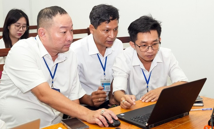 Cán bộ, công chức phường Bến Thành mới (TP.HCM) vận hành thử nghiệm hành chính công - Ảnh: HỮU HẠNH