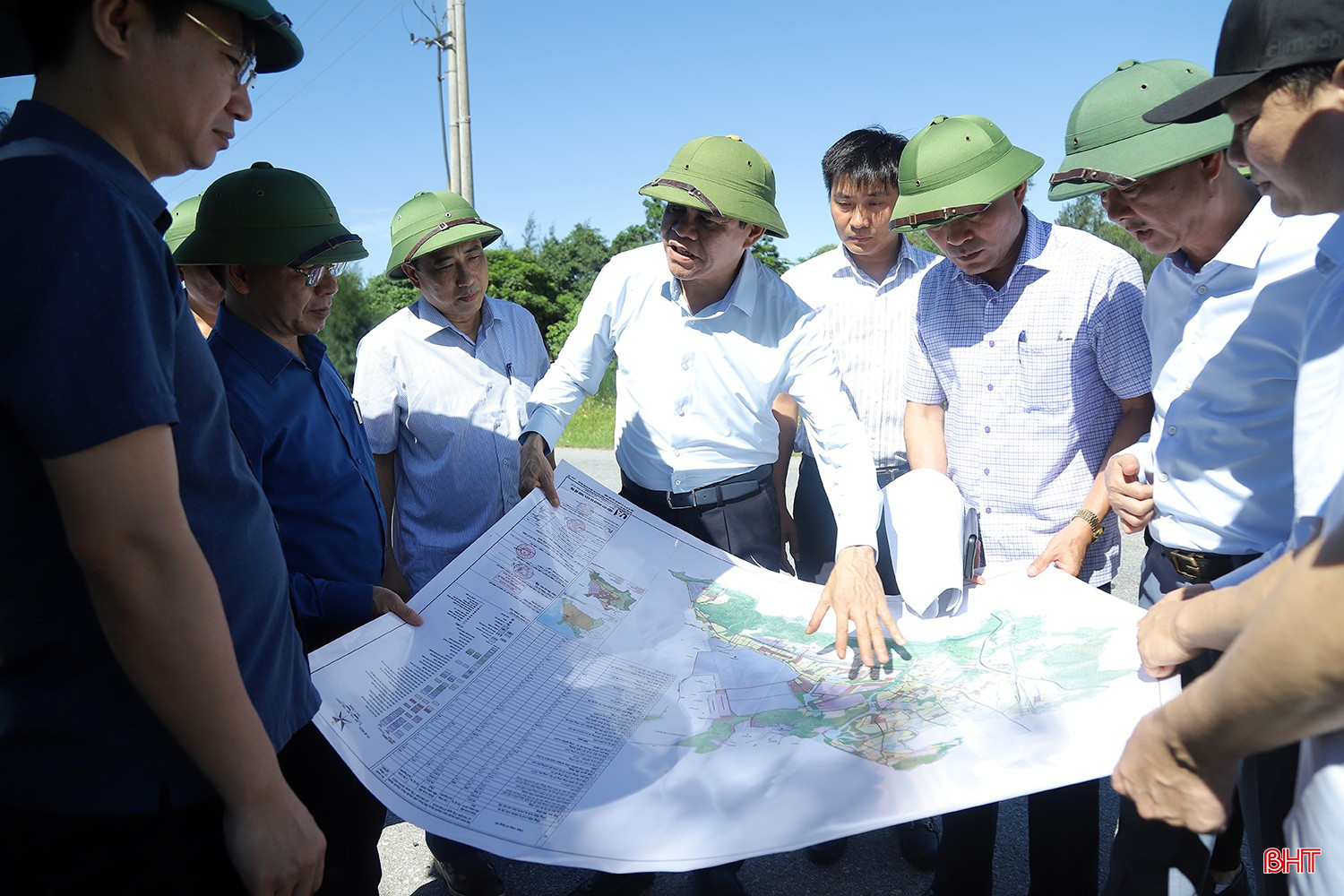 Sáng 17/6, Chủ tịch UBND tỉnh Võ Trọng Hải, Phó Chủ tịch UBND tỉnh Trần Báu Hà và đoàn công tác kiểm tra hiện trường các khu vực có thể làm mỏ vật liệu san lấp phục vụ dự án đầu tư xây dựng, kinh doanh kết cấu hạ tầng Khu Công nghiệp Vinhomes Vũng Áng và các dự án đầu tư trong Khu Kinh tế Vũng Áng.