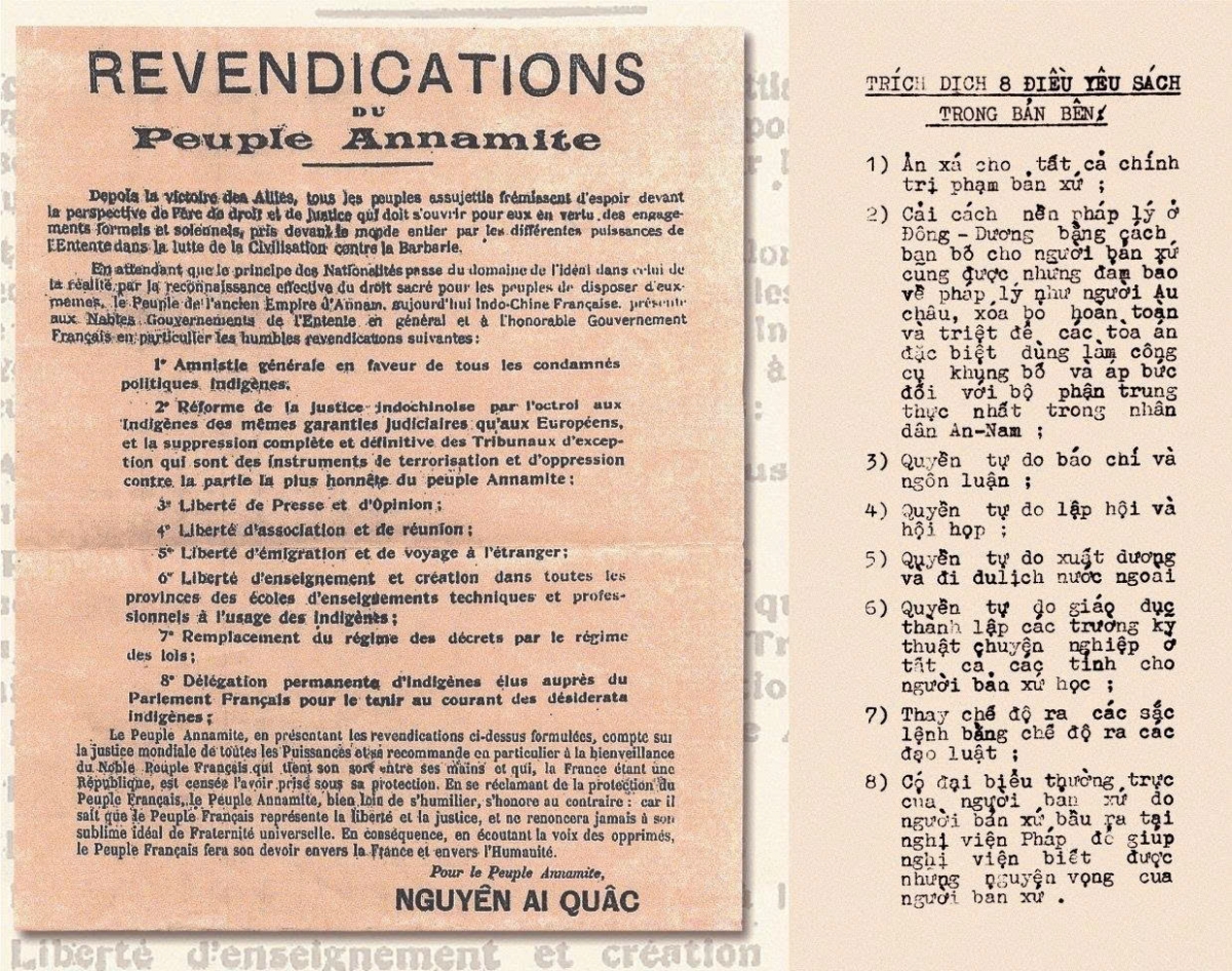 Bản yêu sách Tám điểm của nhân dân Việt Nam do Nguyễn Ái Quốc và nhóm người Việt Nam yêu nước gửi Nghị viện Pháp và các đoàn đại biểu dự Hội nghị Vécxây (6/1919)
