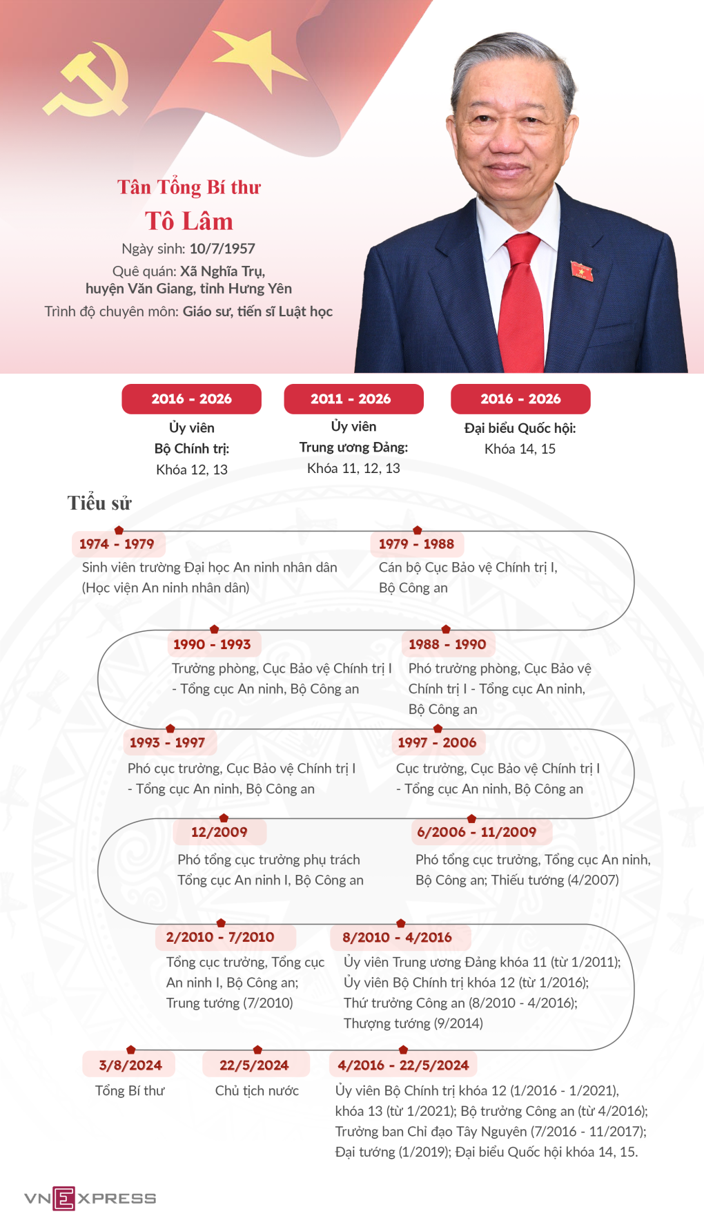 Tiểu sử tân Tổng Bí thư Tô Lâm. Đồ họa: Khánh Hoàng