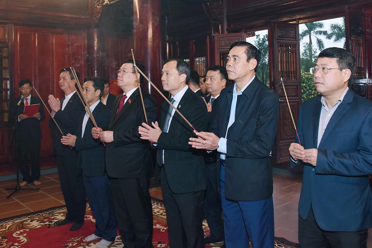 Đến dâng hương tưởng niệm Chủ tịch Hồ Chí Minh tại Khu lưu niệm Bác Hồ, Chủ tịch Quốc hội Vương Đình Huệ cùng đoàn côn tác bày tỏ lòng thành kính, biết ơn vô hạn đối với công lao to lớn của Chủ tịch Hồ Chí Minh - người sáng lập và rèn luyện Đảng ta, vị lãnh tụ thiên tài của Đảng, dân tộc, của Nhân dân Việt Nam.
