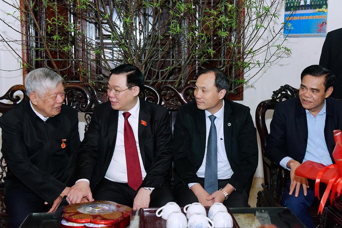 Tiếp đó, Chủ tịch Quốc hội Vương Đình Huệ cùng đoàn công tác đã đến tặng quà, chúc tết các đồng chí nguyên lãnh đạo tỉnh gồm Trần Quốc Thại - nguyên Bí thư Tỉnh ủy, Chủ tịch HĐND tỉnh, Trưởng đoàn ĐBQH tỉnh Hà Tĩnh, nguyên đặc phái viên Ban Bí thư Trung ương; Đặng Duy Báu - nguyên Bí thư Tỉnh ủy, nguyên Chủ tịch HĐND tỉnh.