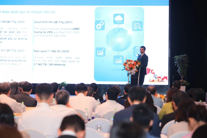 Phát biểu tại Diễn đàn, ông Nguyễn Phú Tiến, Quyền Cục trưởng Cục CĐS Quốc gia (Bộ KH&CN), nhấn mạnh: "CĐS không chỉ là xu thế, mà là đột phá chiến lược để Việt Nam bứt phá và vươn lên". Trong những năm qua, Đảng đã ban hành nhiều định hướng quan trọng, nổi bật là Nghị quyết số 52-NQ/TW về tham gia Cách mạng công nghiệp 4.0 và đặc biệt là Nghị quyết số 57-NQ/TW xác định CĐS là một trong ba đột phá chiến lược. Nghị quyết đặt mục tiêu đến năm 2030, kinh tế số đạt tối thiểu 30% GDP và đến năm 2045, con số này đạt tối thiểu 50%, đưa Việt Nam vào nhóm 30 quốc gia dẫn đầu về ĐMST&CĐS.