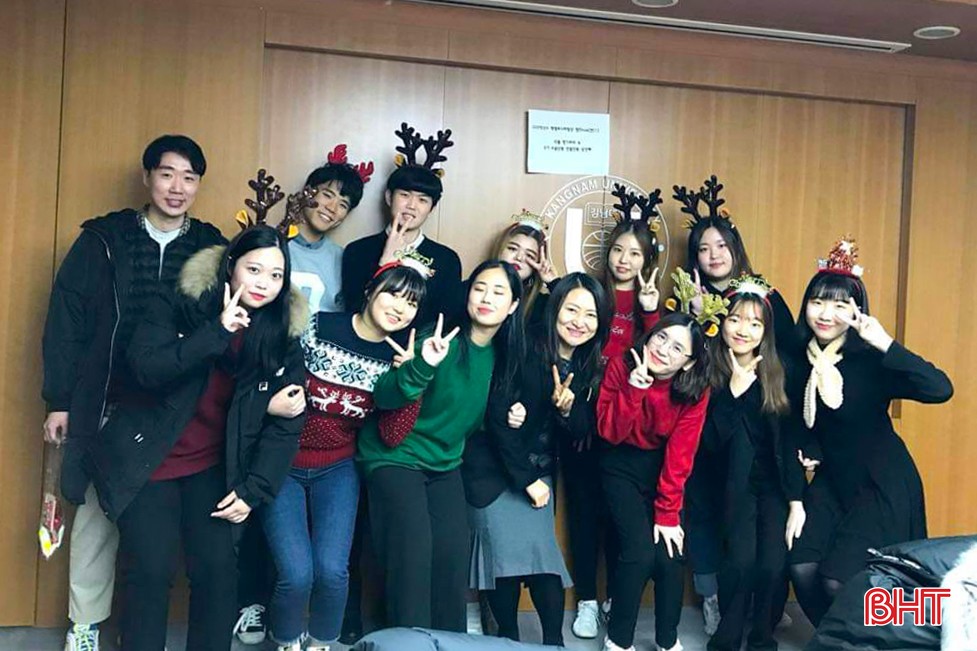 Ngọc Sương cùng các bạn sau khi kết thúc buổi họp chi hội quản lý sinh viên ở Hàn Quốc (Ảnh: Ngọc Sương đứng thứ 3 từ trái qua, hàng dưới)
